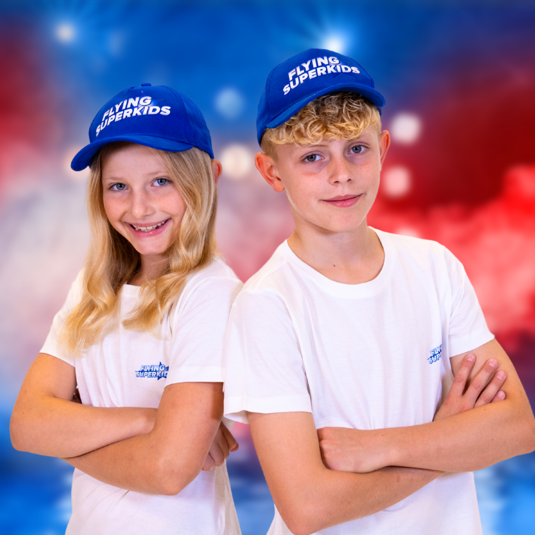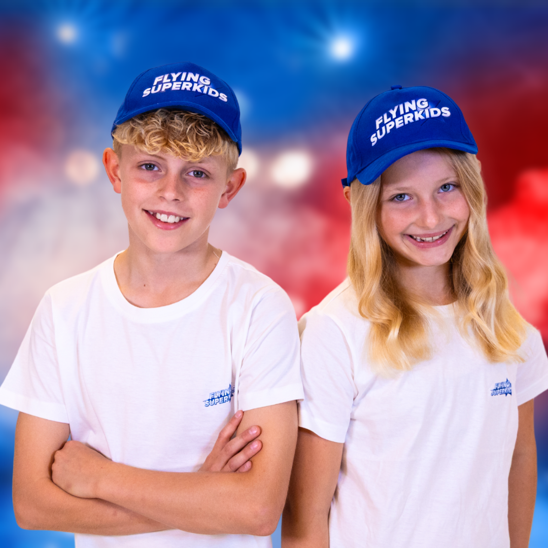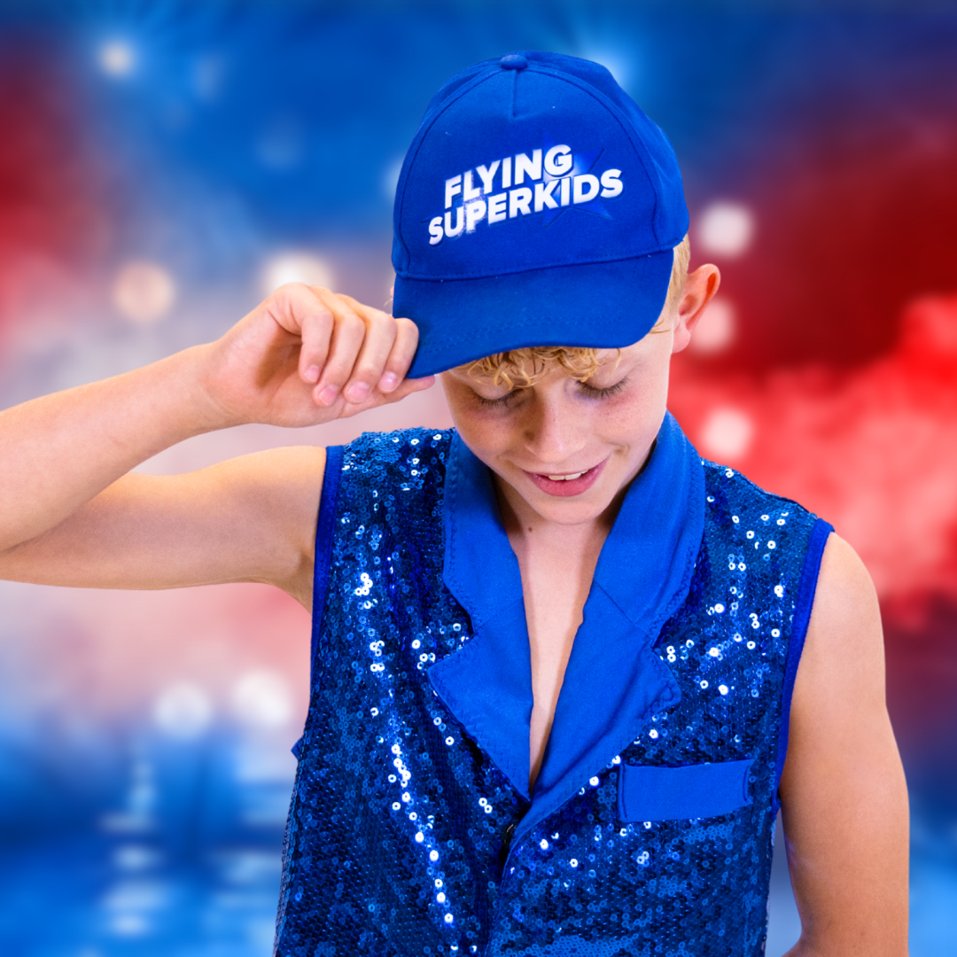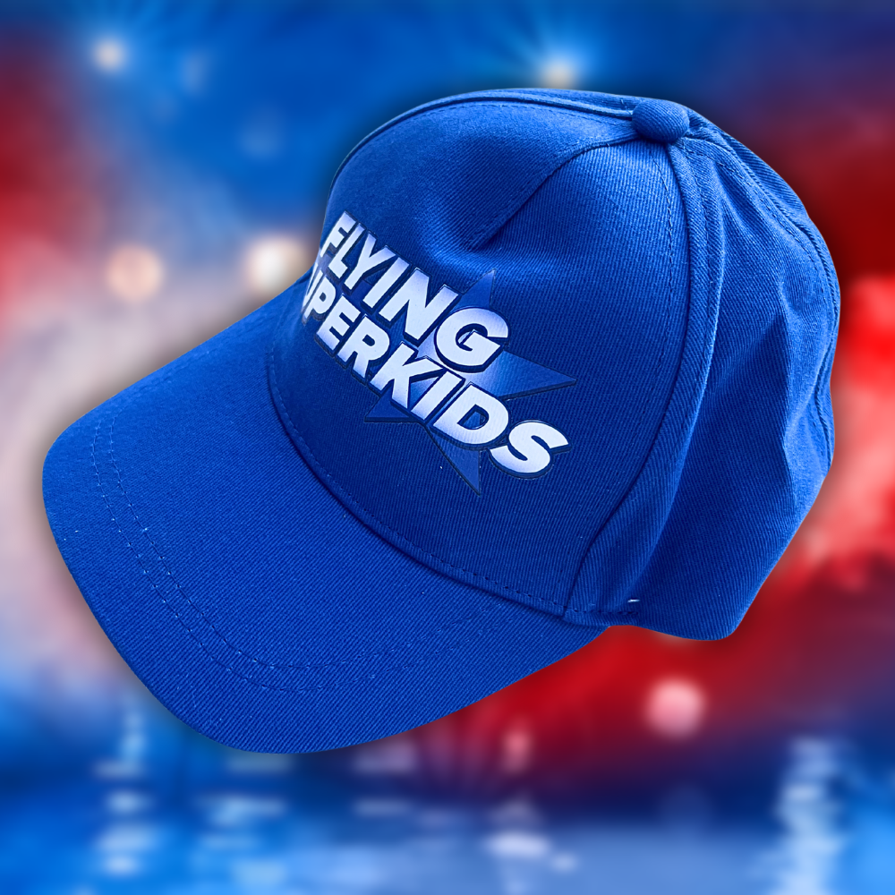 Vores blå Flying Superkids kasket er perfekt til de varme sommerdage.